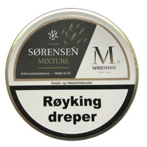 Sørensen Mixture pipe tobakk er en meget populær pipetobakk fra M Sørensen. Black Cavendish, Bright Virginia og krydret Burley brukes i denne unike blandingen. Smaken er av honning og vanilje. En mild og svært behagelig aromatisk blanding med garantert balansert forbrenning.